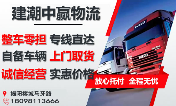 揭阳到萍乡湘东区物流专线是建潮中赢物流主营重点物流线路之一,提供4.2-17.5米整车包车运输,零担专线,可上门取货,量大免费提送货;揭阳到萍乡货运专线价格实惠,欢迎来电咨询。